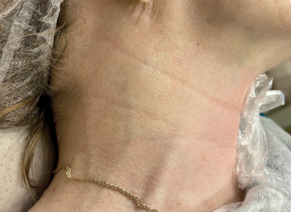 морщины, в том числе и на шее;